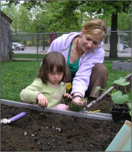 In the Spring of 2006, the Early Sprouts program flourished into eight raised garden beds on the CDC’s playground.