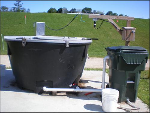 One of the daily tasks that students are a part of at school is to take classroom food waste and scraps out to the “Earth Tub” composter. Food service staff also contribute food waste from the cafeteria to this giant compost system that can hold hundreds of pounds of food material to create compost that is added to the gardens.
