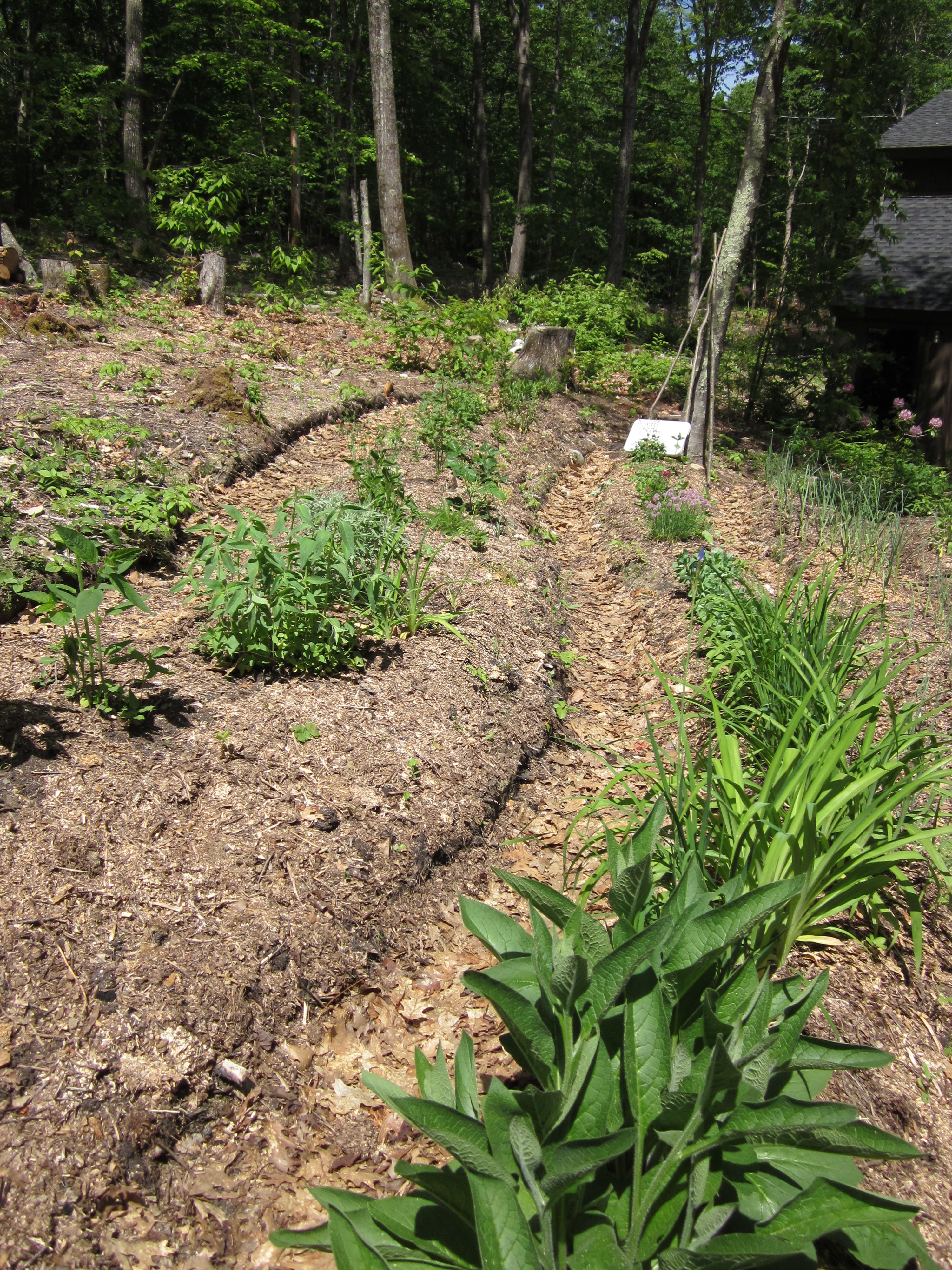 Amy’s site, started in December 2008, is a wooded lot with a steeply sloped